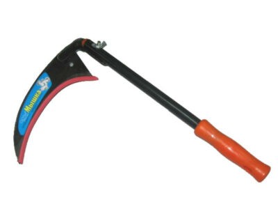 Имеет небольшой размер, хорошо подходит для работы на неровной, каменистой местности, полях с кочками и ямами. Отлично справляется с толстыми стеблями, кустарниками, сухой травой. Косовище прямой формы с удобной рукояткой, длина обычно до 50 см. Полотно косы загнуто, длиной около 35 см. Рукоятка у некоторых моделей регулируемая, что позволяет при необходимости разобрать косу в компактный размер для удобства переноса.